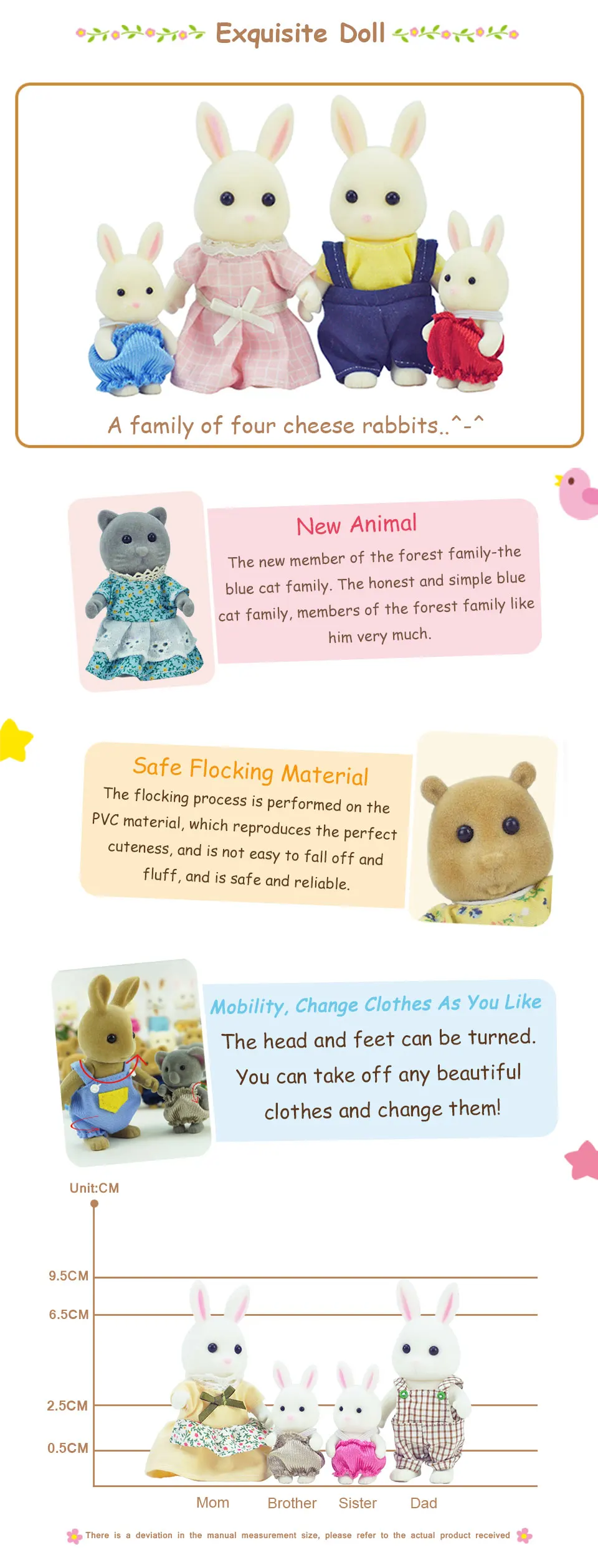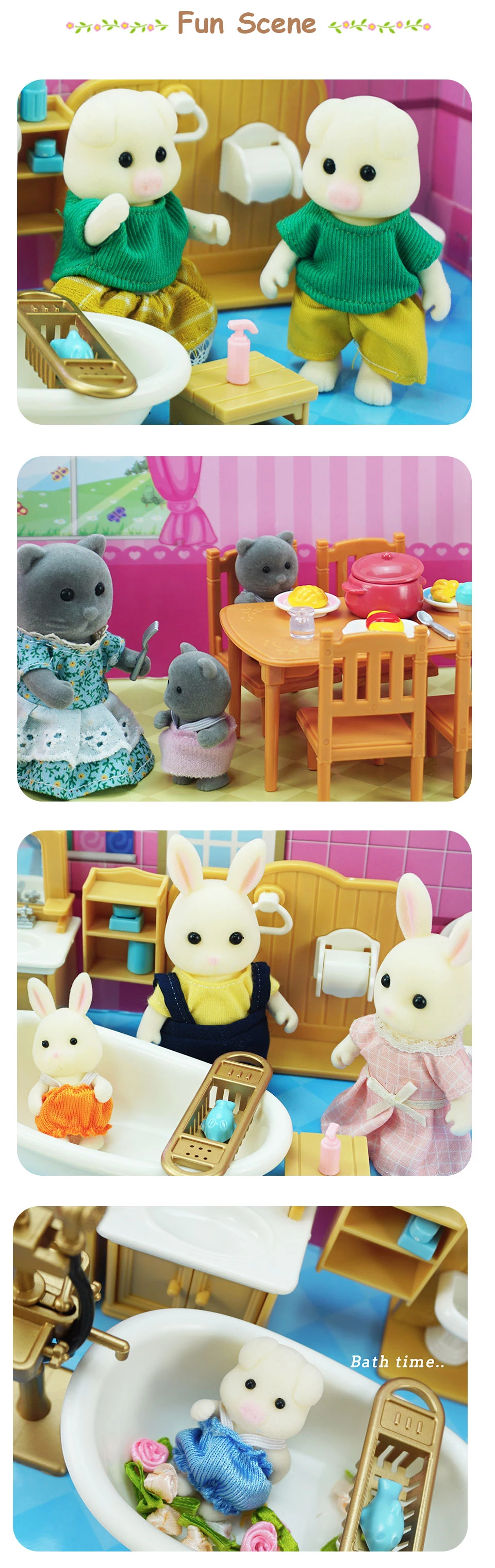 Forest Animal Toy Simulation 1/12 Mini Toy House Furniture Rabbit and Bear Family Dollhouse Girl Toy Gift